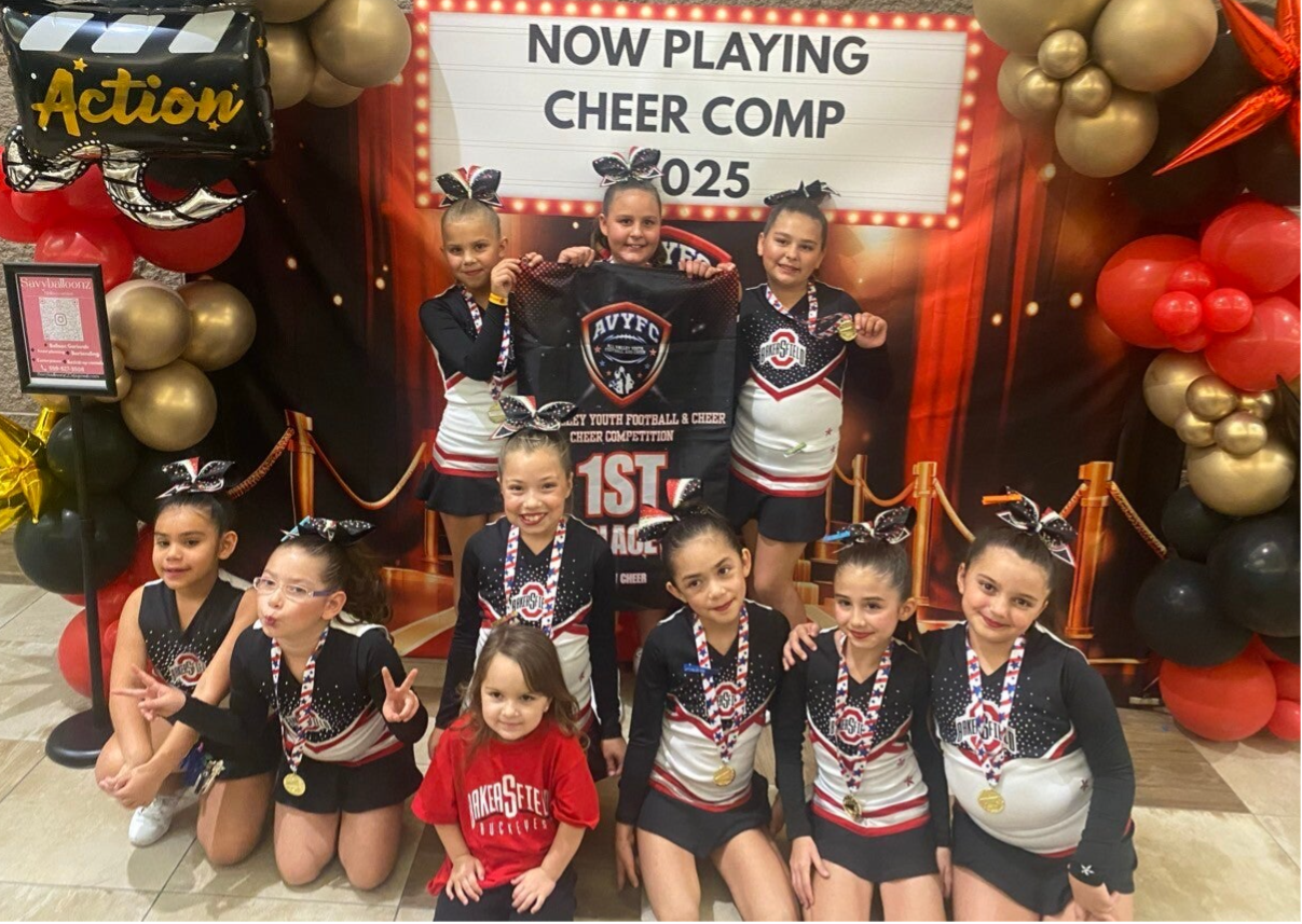 JAMZ Cheer Camp is a one‑day event attended by all cheerleaders in AVYFC and hosted by JAMZ Cheer & Dance. Athletes learn choreography, creative stunts, play games, and earn spirit sticks, participant ribbons, and specialty skill ribbons throughout the day. Each team also decorates a themed pop‑up canopy for a contest. Fun fact Bakersfield Buckeyes won the pop‑up contest in 2025!